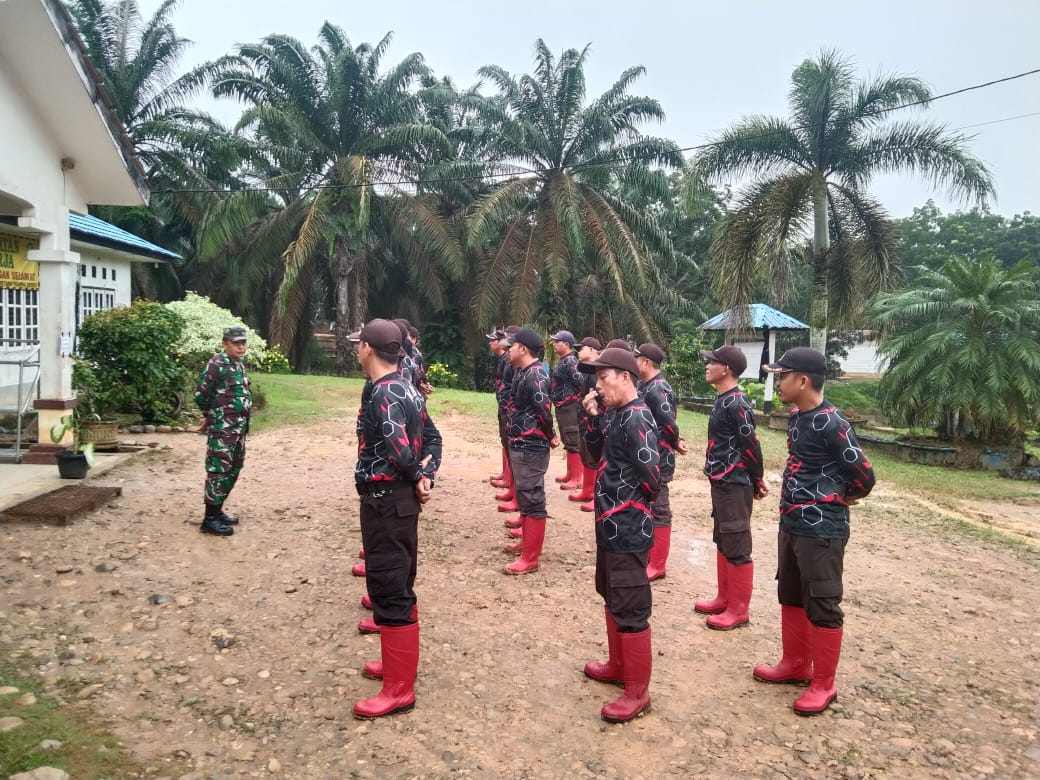 Babinsa Koramil 406-02/Rawas Ilir, Serka Hendri Gusnadi, melaksanakan apel bersama dengan tim security PT Ketapat Bening Estate di Desa Air Bening, Kecamatan Rawas Ilir, Kabupaten Musi Rawas Utara.