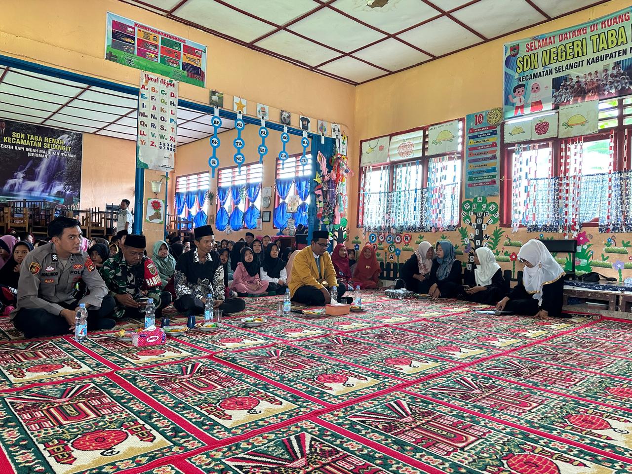 Bintara Pembina Desa (Babinsa) Koramil 406-09/Terawas, Sertu Eko Epriyanto, menghadiri kegiatan peringatan Isra Mi’raj Nabi Muhammad SAW 1446 H/2025 M di Sekolah Dasar Tabarenah, Kecamatan Selangit, Kabupaten Musi Rawas.
