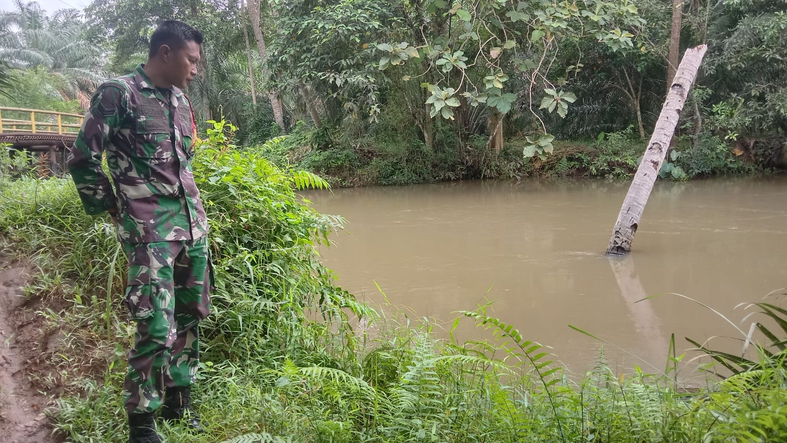 Tugumulyo, 4 Februari 2025. Mengantisipasi perubahan cuaca yang tidak menentu dan potensi terjadinya banjir, Babinsa Koramil 406-06/Tugumulyo melakukan pengecekan sungai di Kelurahan Tugumulyo, Kecamatan Tugumulyo, Kabupaten Musi Rawas.