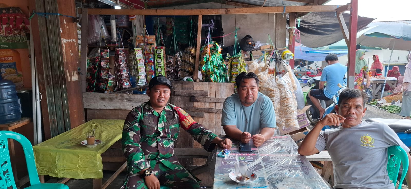 Serda Niki Koramil 406-01/Rawas Ulu Gelar Komsos Terkait Keamanan Siskamling di Pasar Surulangun