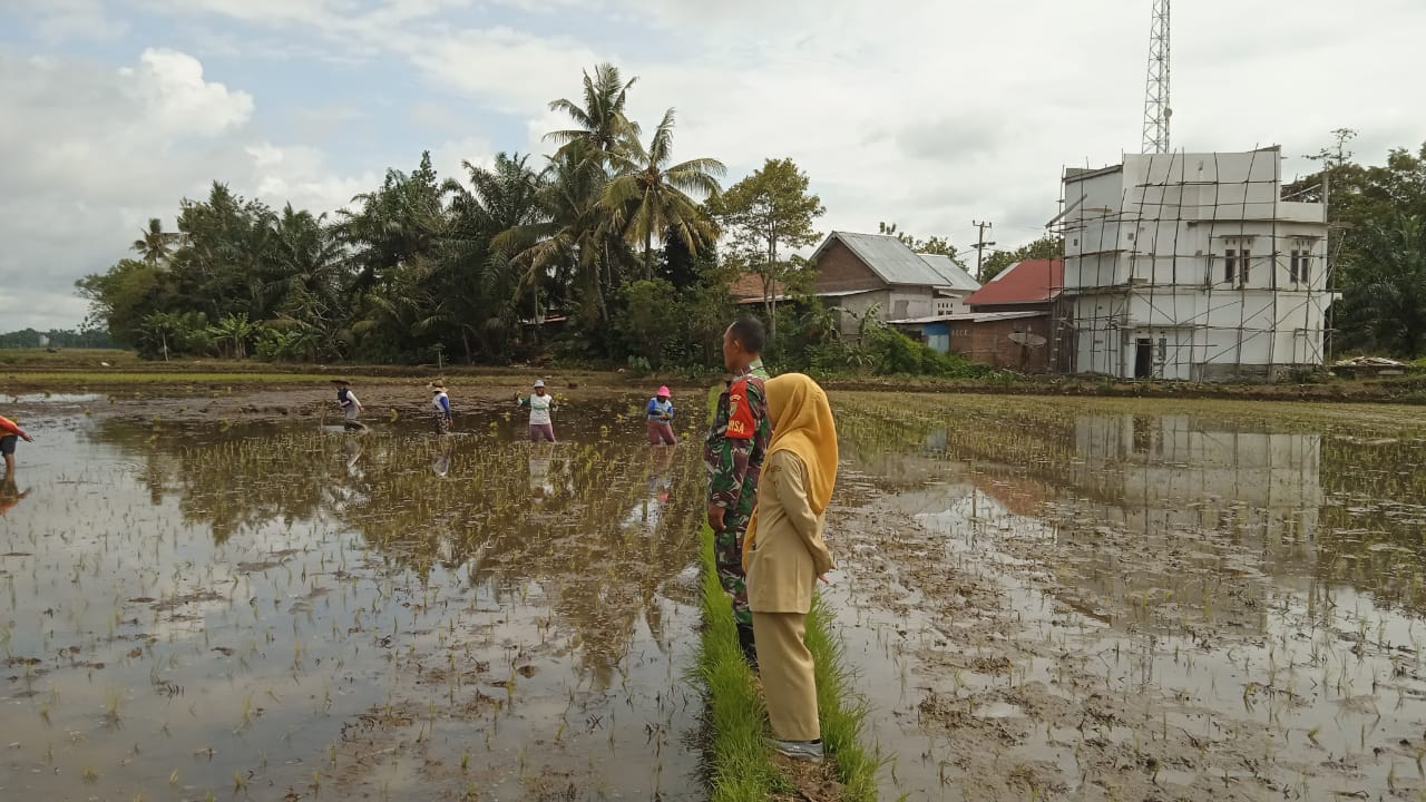 Babinsa Koramil 406-09/Terawas Monitoring Penanaman Padi di Desa Sukamaju