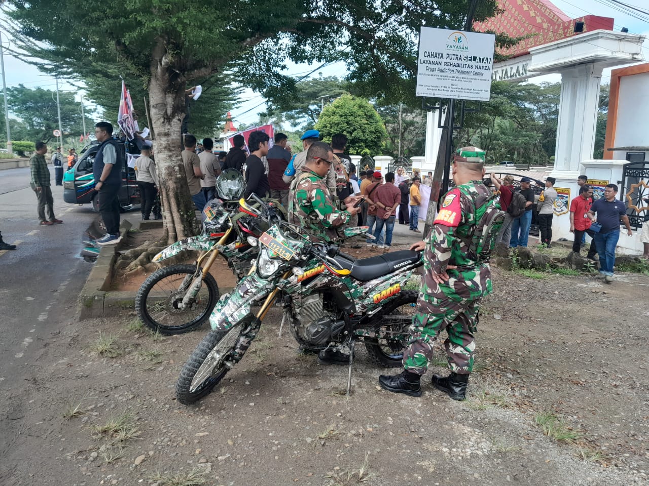 Danramil 406-03/Rupit, Kapten Inf Abbas Syarif, bersama anggota Koramil melaksanakan pengamanan aksi damai yang digelar oleh Dewan Harian Nasional Komite Penyelamat Kedaulatan Pemerintahan Republik Indonesia (DHN KPK-PEPANRI) di Kantor Bupati Musi Rawas Utara (Muratara).
