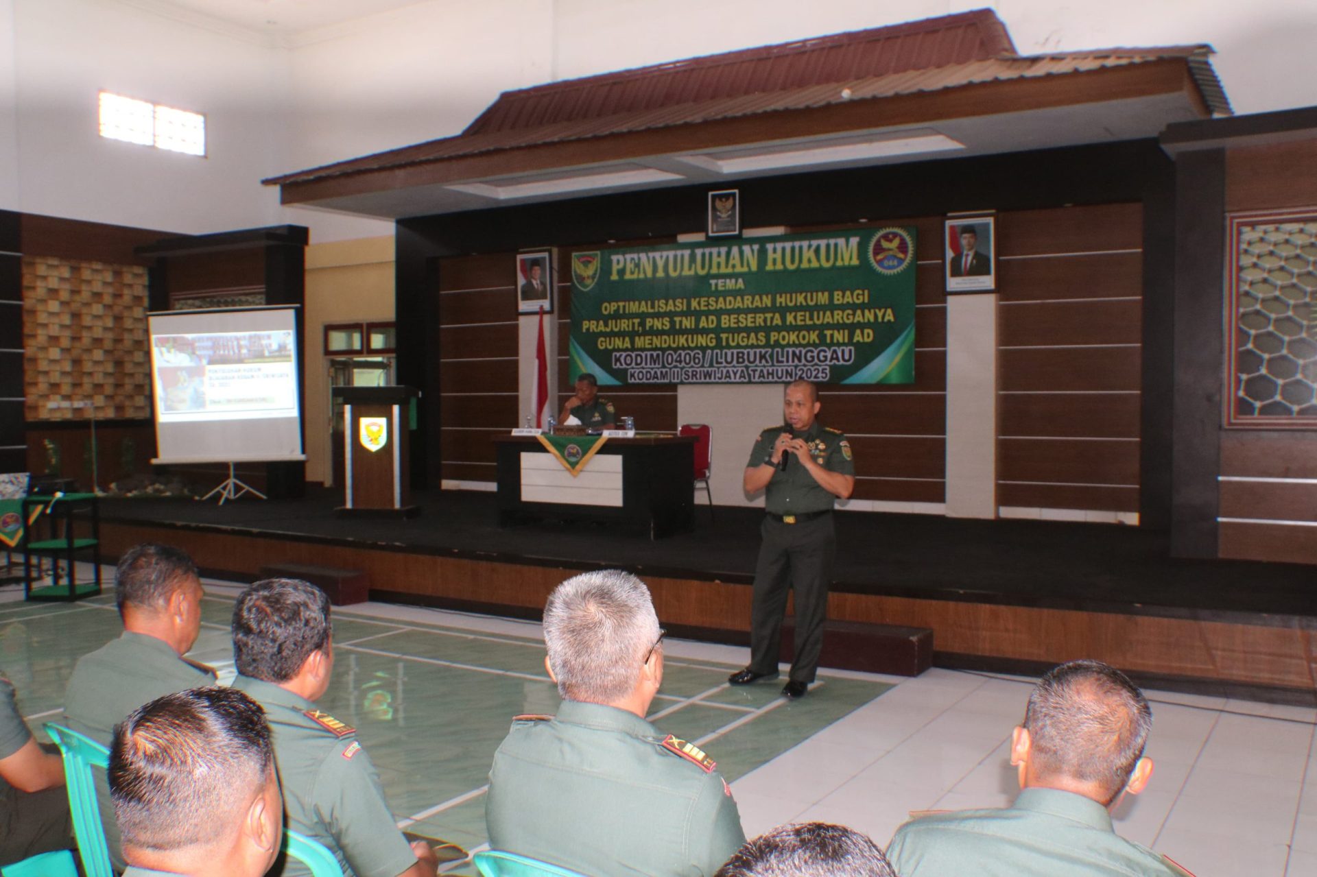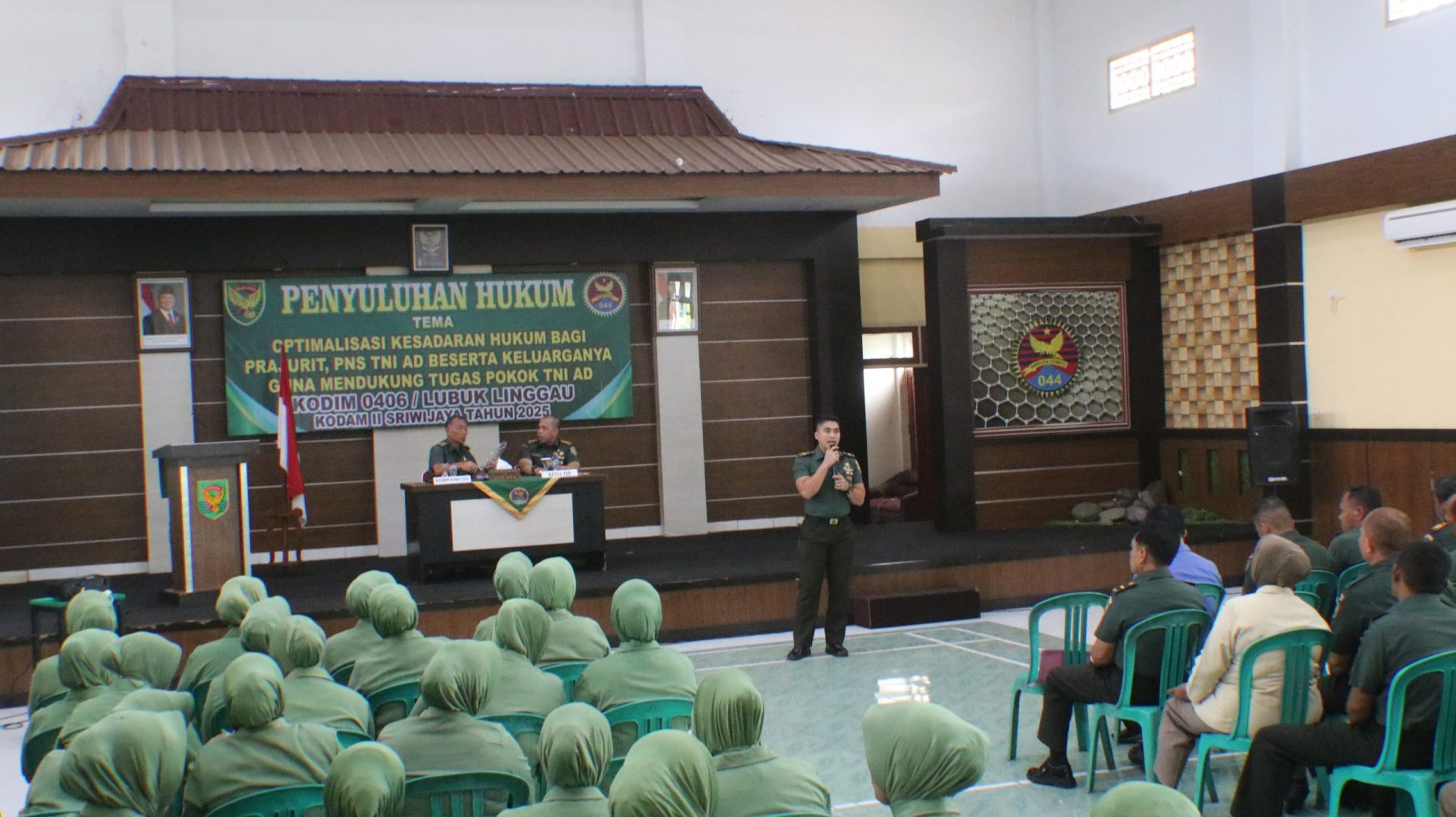 Kodim 0406/Lubuklinggau bersama Persit Kartika Chandra Kirana menerima penyuluhan hukum dari Kodam II/Sriwijaya (Swj) yang disampaikan oleh Letkol Chk Ferdiansyah Gumai, S.E., S.H., di Aula Kodim 0406/Lubuklinggau, Rabu (19/02/2025).