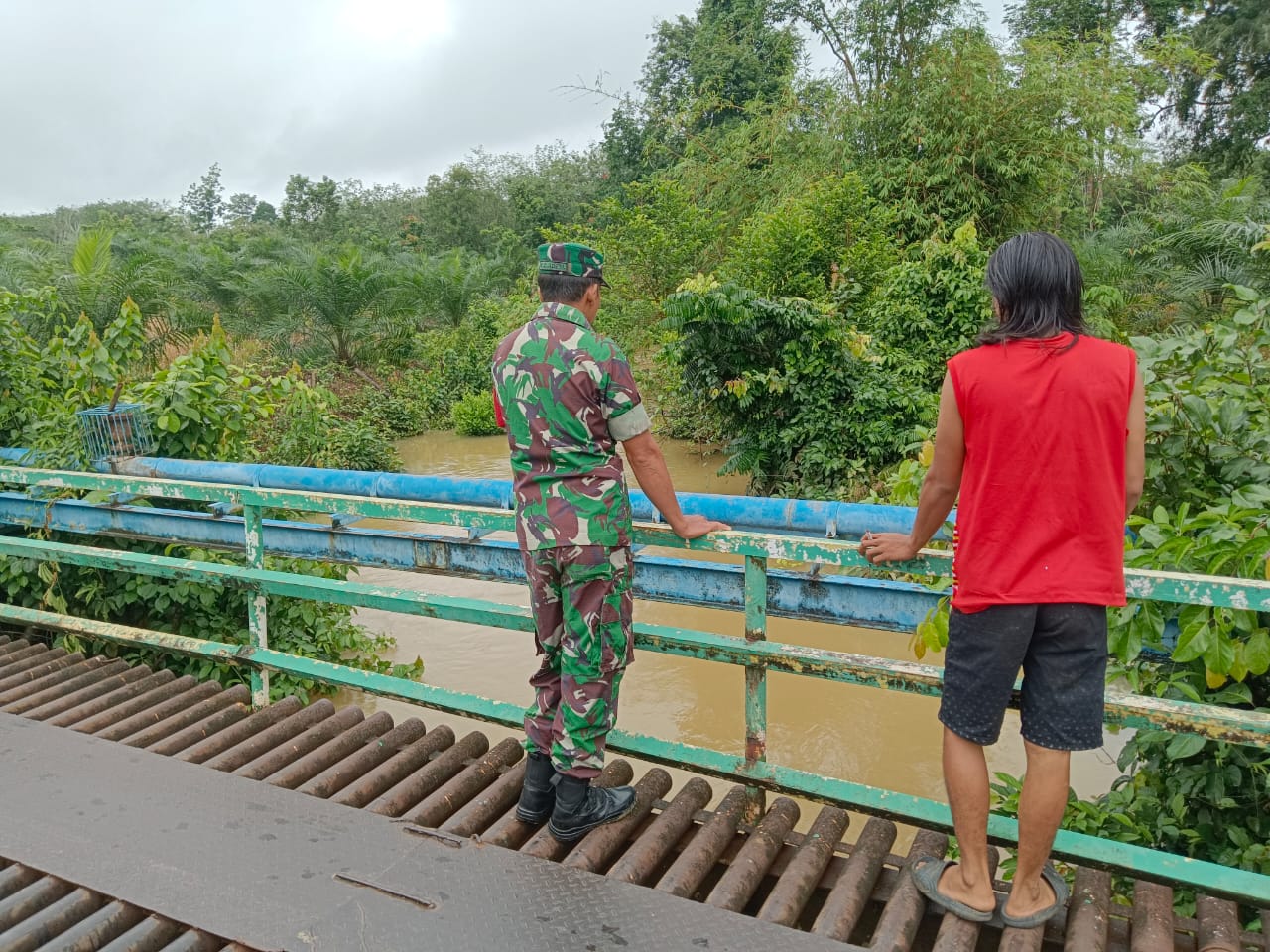 Babinsa Koramil 406-07/Jayaloka dan Mitra Karib Aktif Pantau Aliran Sungai untuk Cegah Bencana