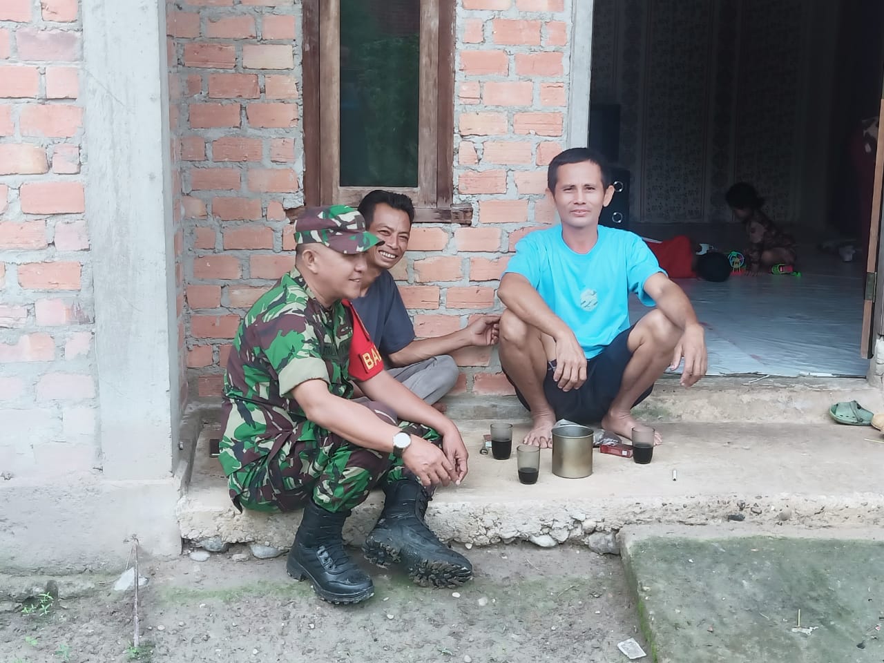 Bintara Pembina Desa (Babinsa) Koramil 406-01/Rawas Ulu, Sertu Petrizal, melaksanakan kegiatan komunikasi sosial (Komsos) dengan warga Desa Pangkalan, Kecamatan Rawas Ulu, Kabupaten Musi Rawas Utara.