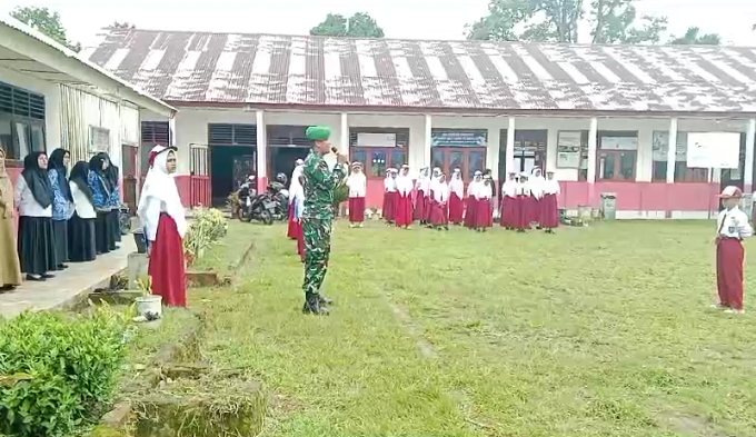 Gelorakan Semangat Nasionalisme Babinsa Koramil 406-05/Muara Kelingi Bertindak Sebagai Inspektur Upacara Disekolah