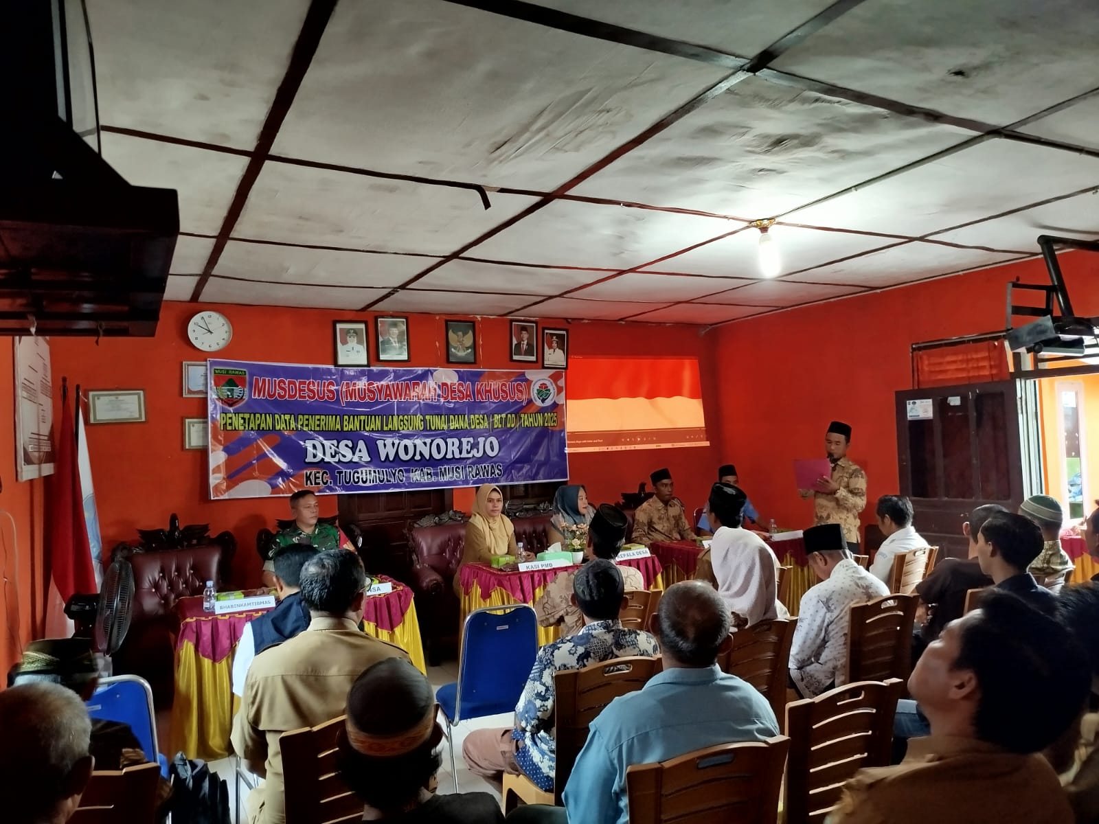 Kegiatan ini bertujuan untuk membahas strategi peningkatan ketahanan pangan di Desa Wonorejo serta mekanisme penyaluran BLTD kepada masyarakat yang membutuhkan. Dalam musyawarah ini, berbagai pihak terlibat dalam diskusi guna memastikan program yang dilaksanakan berjalan dengan efektif dan tepat sasaran.