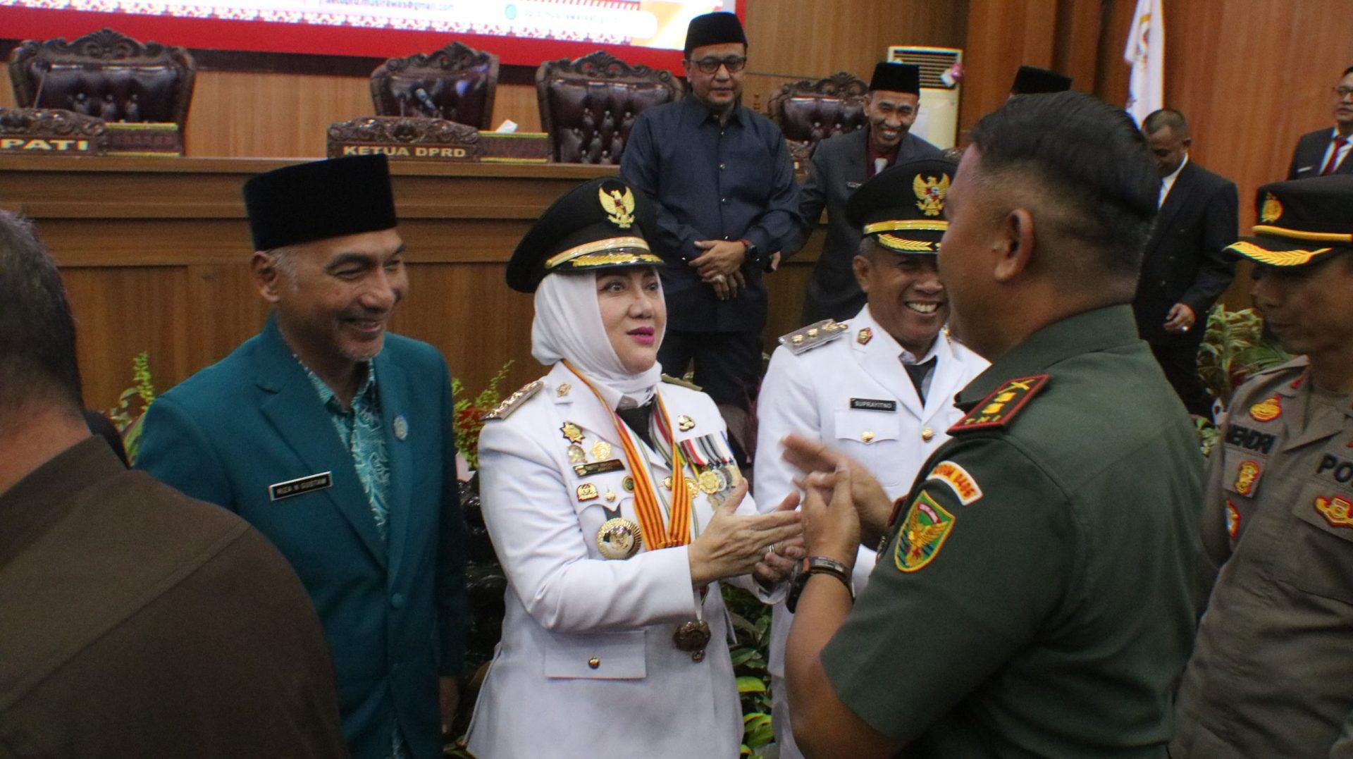 Komandan Kodim (Dandim) 0406/Lubuklinggau, Letkol Inf Arie Prasatyo Widyo Broto, S.E., M.M., menghadiri Rapat Paripurna DPRD Kabupaten Musi Rawas dalam rangka mendengarkan pidato Bupati dan Wakil Bupati terpilih, Hj. Ratna Machmud dan H. Suprayitno,