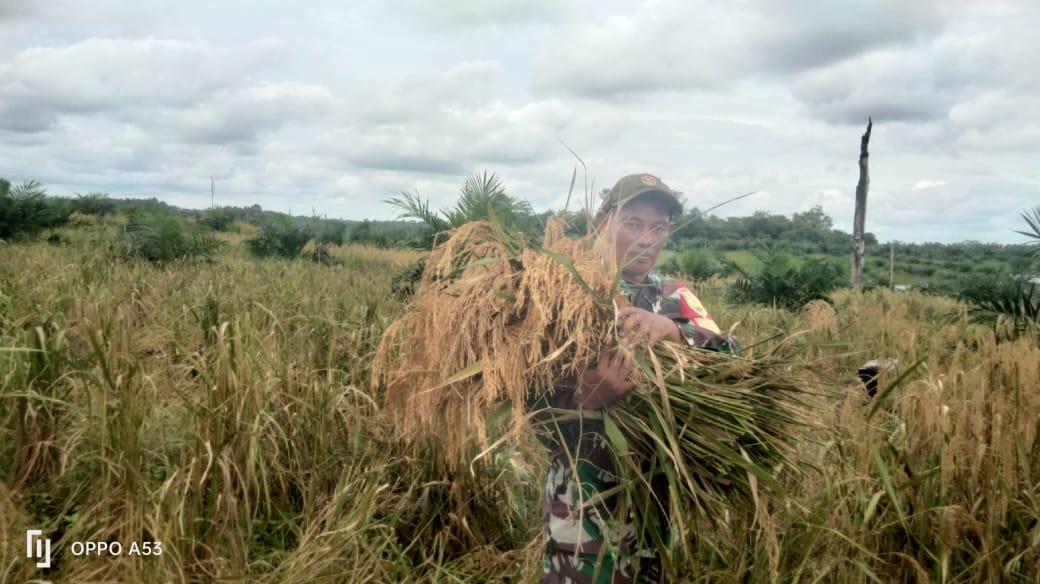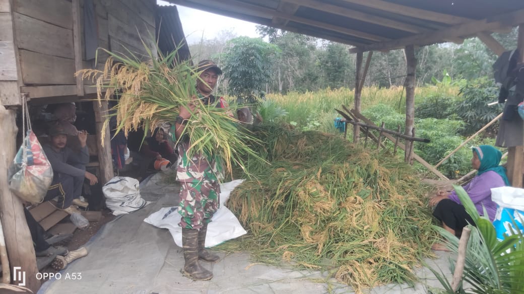 Babinsa Serda Suryanda Laksanakan Pendampingan Panen Padi Gogo di Lahan Anggota Kelompok Tani Cahaya Tani