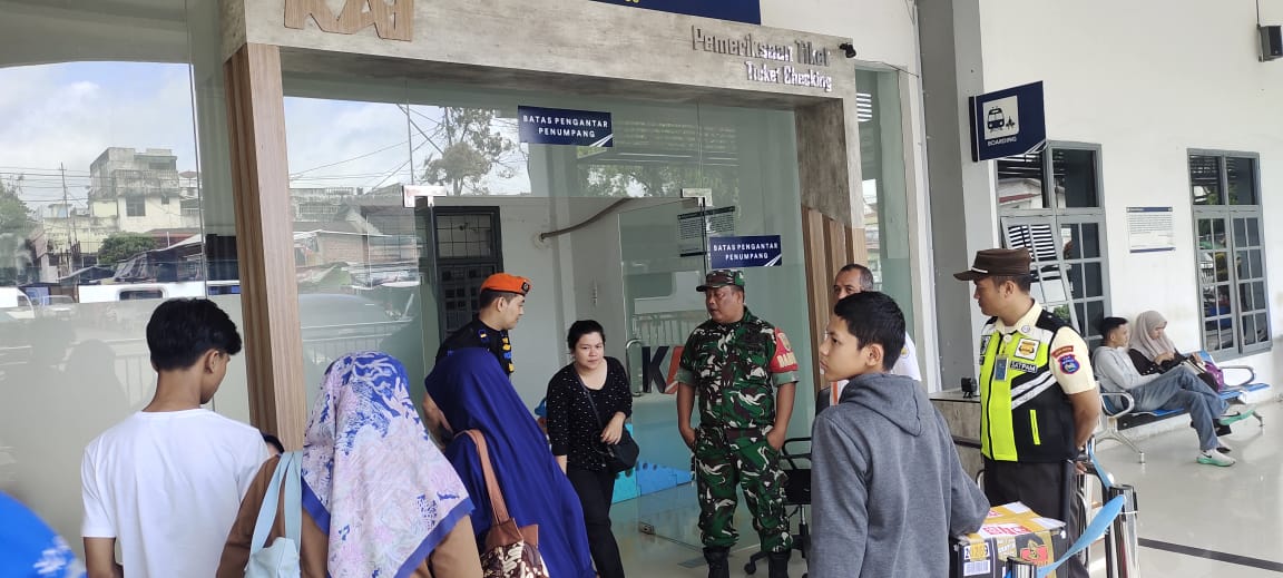 Babinsa Koramil 406-08/Lubuklinggau Monitoring Keberangkatan Kereta Api dan Lakukan Komsos di Stasiun Lubuklinggau