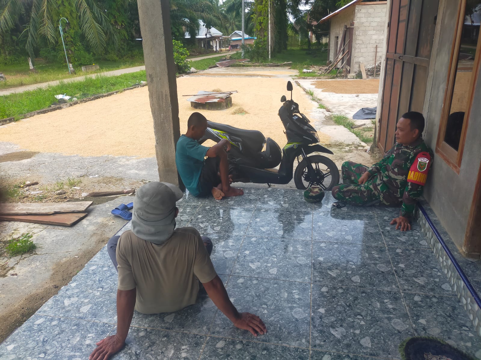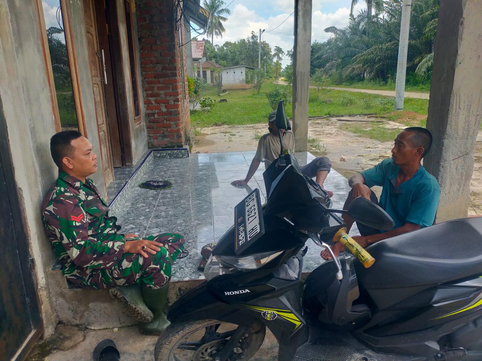 Babinsa Koramil 406-09/Terawas, Koptu B. Kurniawan, melaksanakan kegiatan komunikasi sosial (Komsos) bersama warga di Desa Sumbersari, Kecamatan Sumber Harta, Kabupaten Musi Rawas.