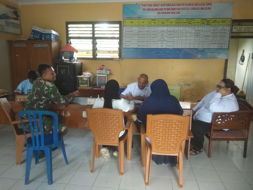 Babinsa Koramil 406-08/Lubuklinggau, Serda Sandy, melaksanakan komunikasi sosial (Komsos) bersama tenaga kesehatan Puskesmas di Kelurahan Keputraan, Kecamatan Lubuklinggau Barat II, Kota Lubuklinggau.