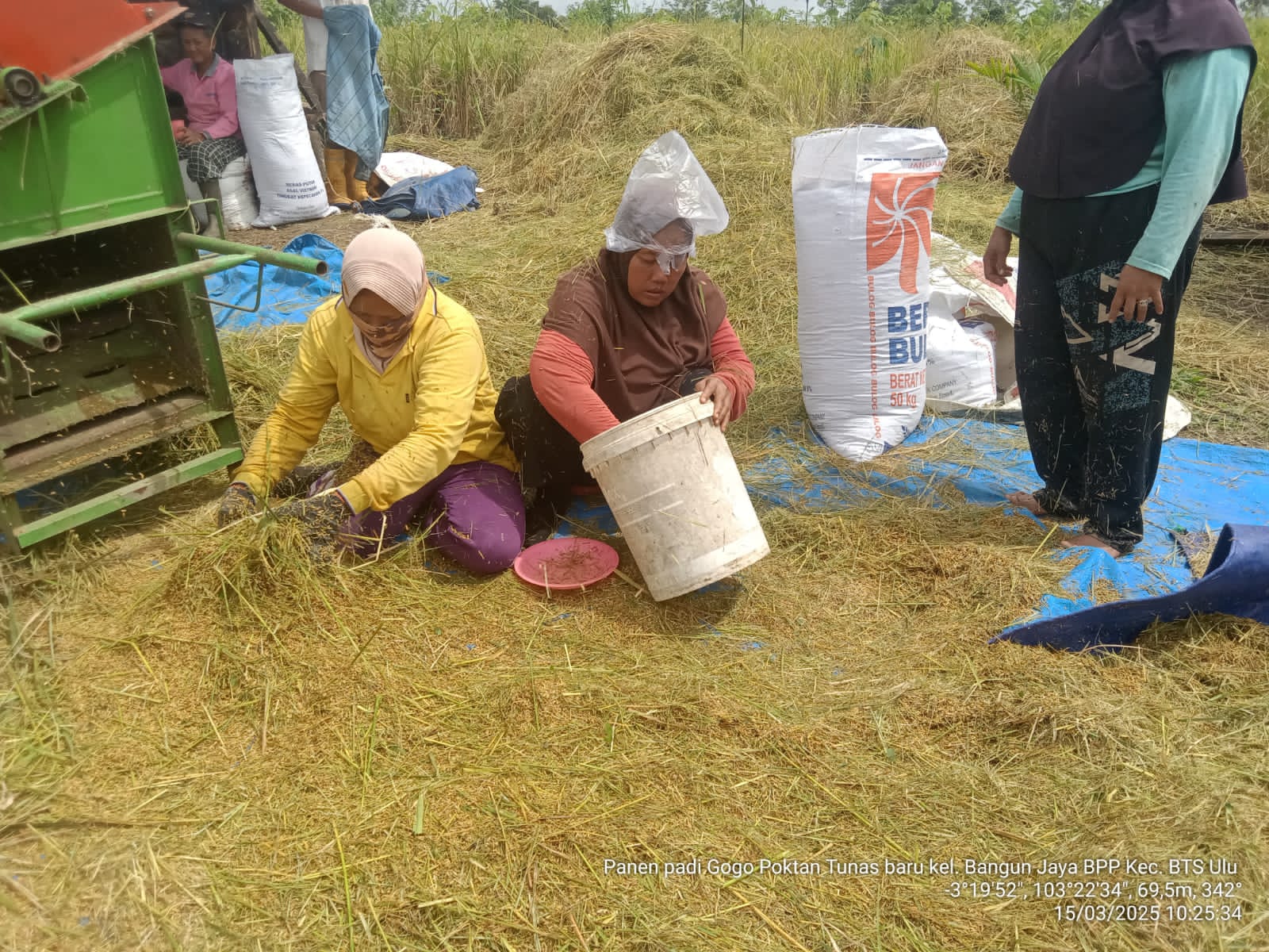 Lensa Garuda- Musi Rawas, Kegiatan pendampingan Babinsa Koramil 406-05/Muara Kelingi Koptu Adim dalam mendukung ketahanan pangan nasional kembali membuahkan hasil. Dalam kesempatan kali ini, Koptu Adim turut serta membantu keluarga Bapak Suradi anggota Poktan Tunas Baru dalam panen padi GOGO jenis Dayang Rindu yang ditanam di lahan seluas 1 hektar di Kelurahan Bangun Jaya , Kecamatan BTS Ulu Kabupaten Musi Rawas. Sabtu (15/03/2025).