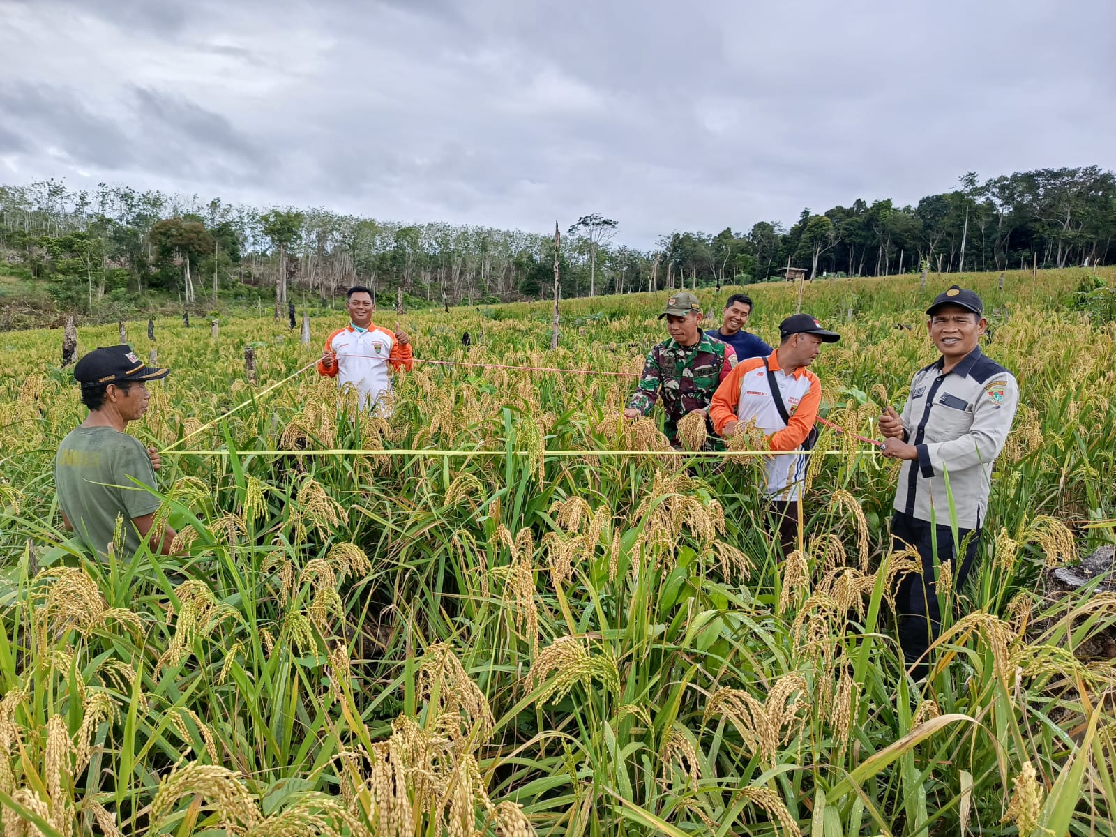 “Pengubinan yang kita lakukan hari ini menjadi tolak ukur keberhasilan dalam melakukan usaha tani. Disini kita bisa memperkirakan berapa hasil yang akan diperoleh oleh petani nantinya. Dari Luas lahan 12 ha yang telah dilakukan pengubinan didapat perkiraan hasil keseluruhan gabah kering panen 37.2 Ton”, terang Babinsa Sertu Dodi Saputra.