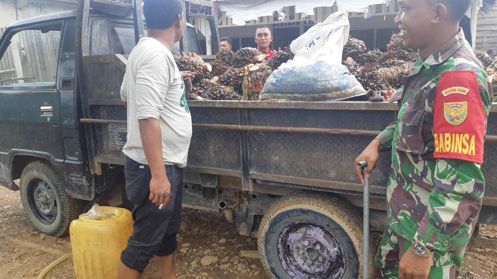 Dalam kesempatan tersebut, Babinsa Koptu Siswanto mengajak Pak Sapar berbincang-bincang mengenai perkembangan pertanian sawit di daerah tersebut serta mendiskusikan berbagai permasalahan yang dihadapi para petani, seperti masalah cuaca, teknik pemeliharaan tanaman, dan potensi peningkatan hasil panen. Selain itu.