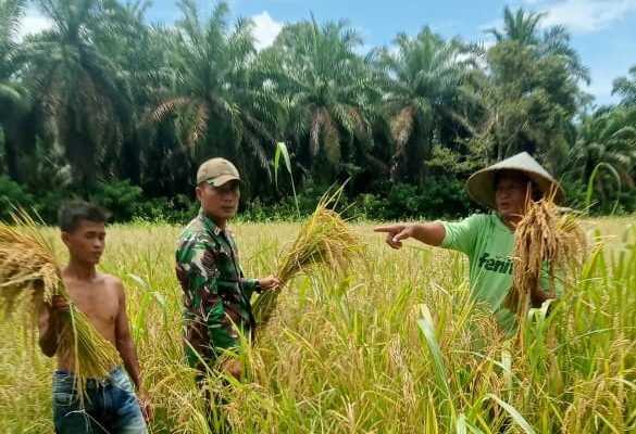 Babinsa Koramil 406-05/Muara Kelingi Dampingi Petani Melaksanakan Panen Padi