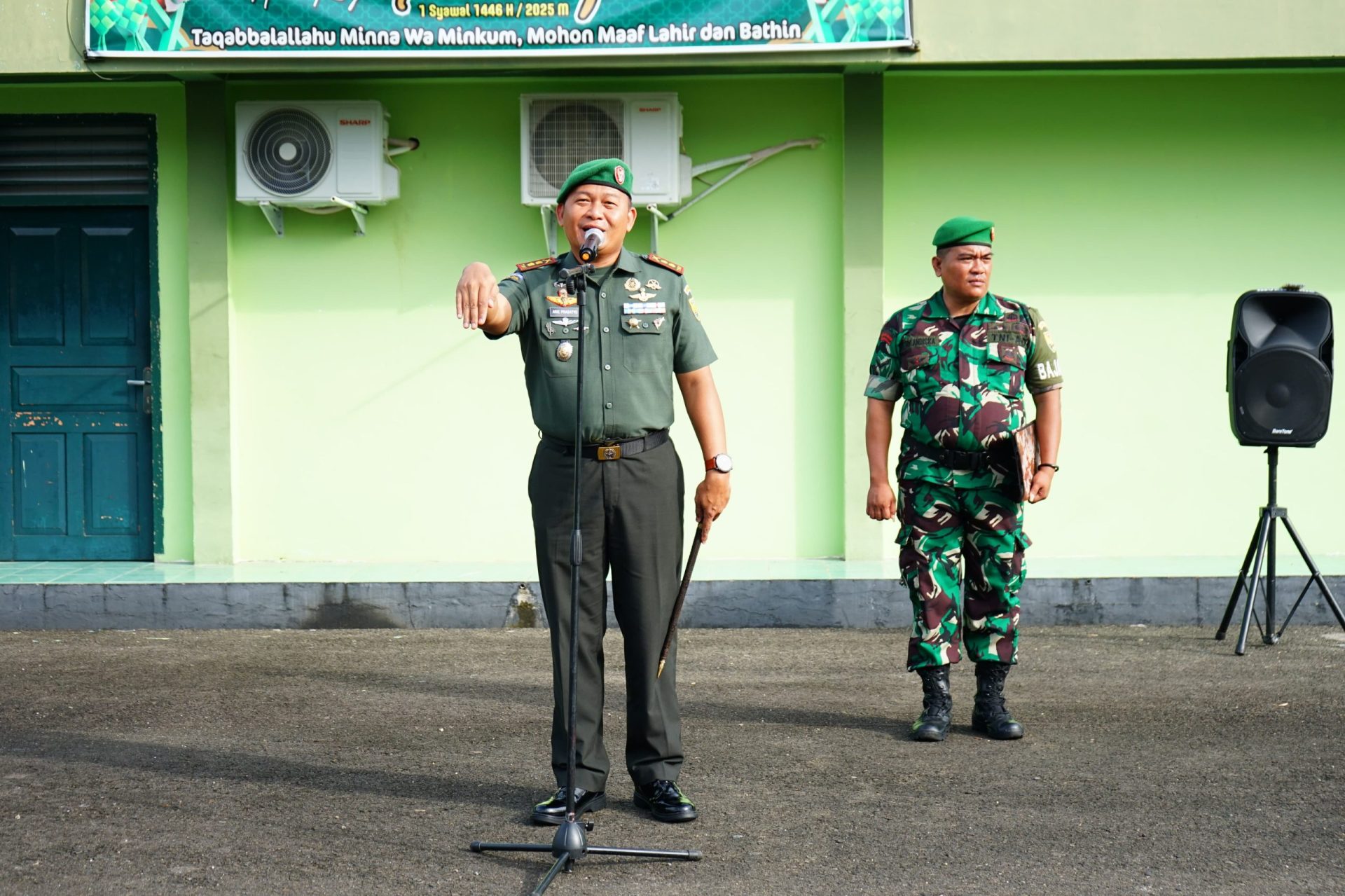 “Dalam momentum ini saya secara pribadi dan keluarga juga atas nama Komandan Kodim mengucapkan Selamat hari raya idul fitri, Mohon Maaf Lahir dan Batin. Apabila ada salah dan khilaf selama ini pada kesempatan ini mari kita saling memaafkan mudah-mudahan dengan di awali dengan maaf-maafan ini diampuni semua dosa dan kesalahan, dan kita bisa bekerja dengan baik dan maksimal.”ucap Dandim Letkol Inf Arie Prasatyo Widyo Broto.