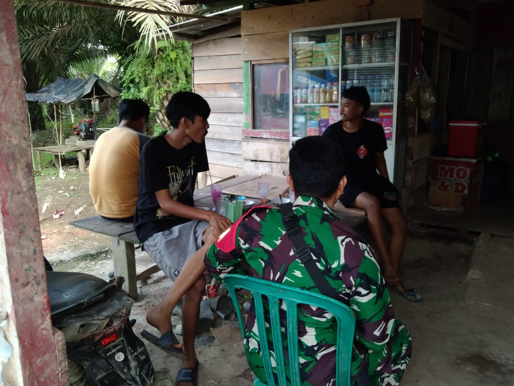 Babinsa Koramil 406-02/Rawas Ilir, Serda Hendri Gusnadi, melaksanakan kegiatan komunikasi sosial (komsos) bersama warga di Desa Air Bening, Kecamatan Rawas Ilir, Kabupaten Musi Rawas Utara,