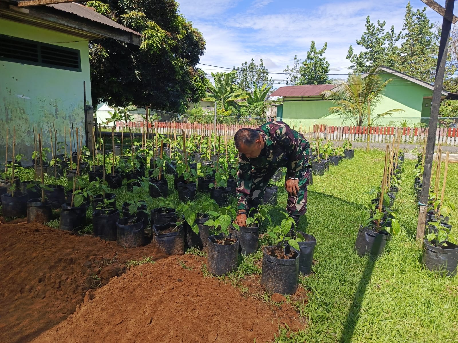 Kegiatan ini merupakan bagian dari upaya mendukung ketahanan pangan serta pemanfaatan lahan terbatas secara produktif. Tanaman cabe yang telah tumbuh dengan baik ini merupakan hasil kerja sama antara anggota Koramil dan masyarakat sekitar yang turut serta dalam kegiatan pertanian urban sederhana.