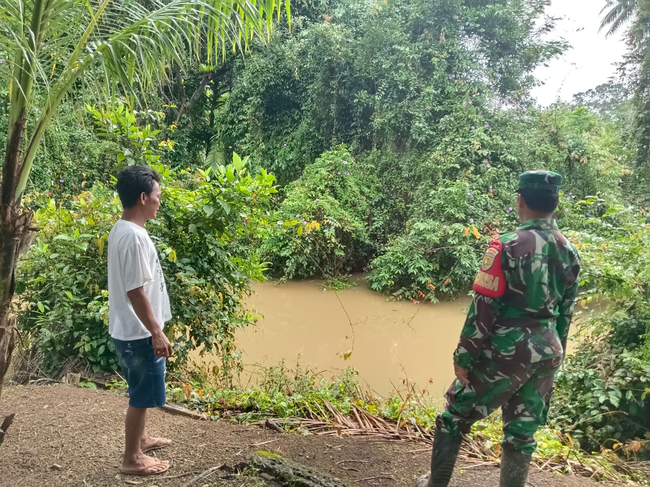 Babinsa juga mengimbau kepada masyarakat sekitar agar tetap waspada, menjaga kebersihan lingkungan, dan tidak membuang sampah sembarangan ke sungai guna mencegah terjadinya penyumbatan aliran air.