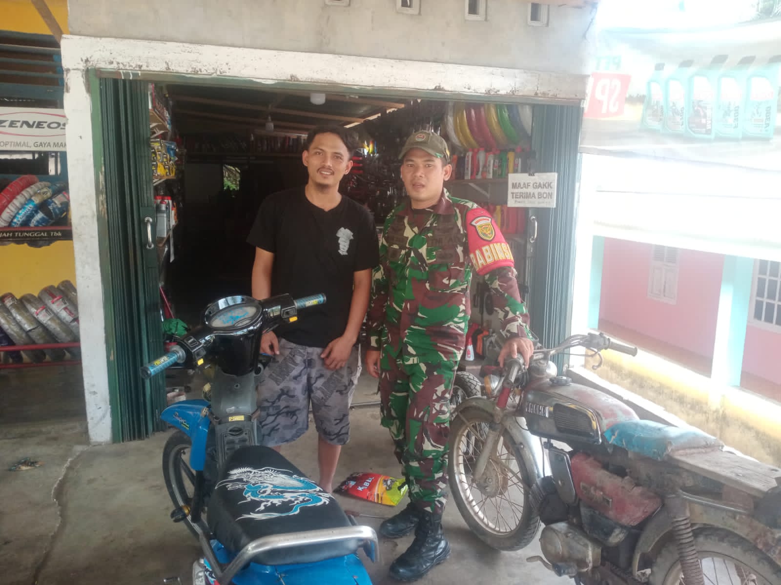 Babinsa Jalin Komunikasi Sosial dengan Pemilik Bengkel Motor untuk Tingkatkan Kemanunggalan TNI-Rakyat