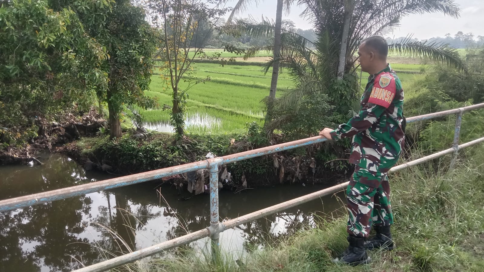 Dalam upaya antisipasi bencana banjir, Babinsa Koramil 406-06/Tugumulyo melakukan pengecekan debit air di sejumlah titik rawan banjir di wilayah Kecamatan Tugumulyo, Kabupaten Musi Rawas, pada Minggu (27/04/2025).