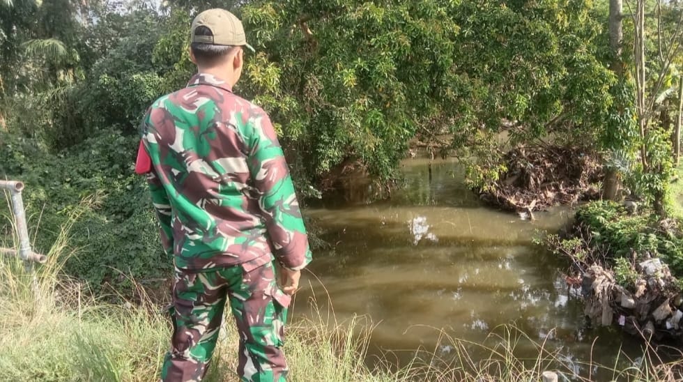 Sertu Roman Babinsa Koramil 406-06/Tugumulyo Lakukan Pengecekan Debit Air Rawa di Desa Sumbersari