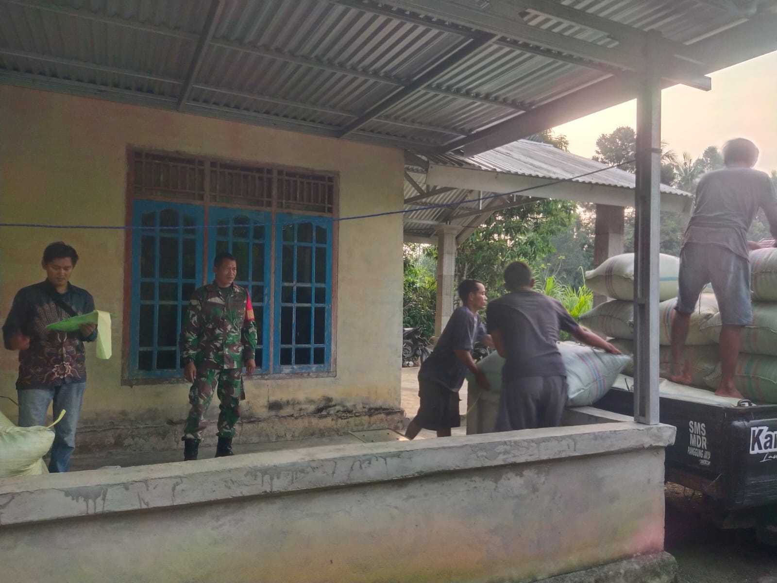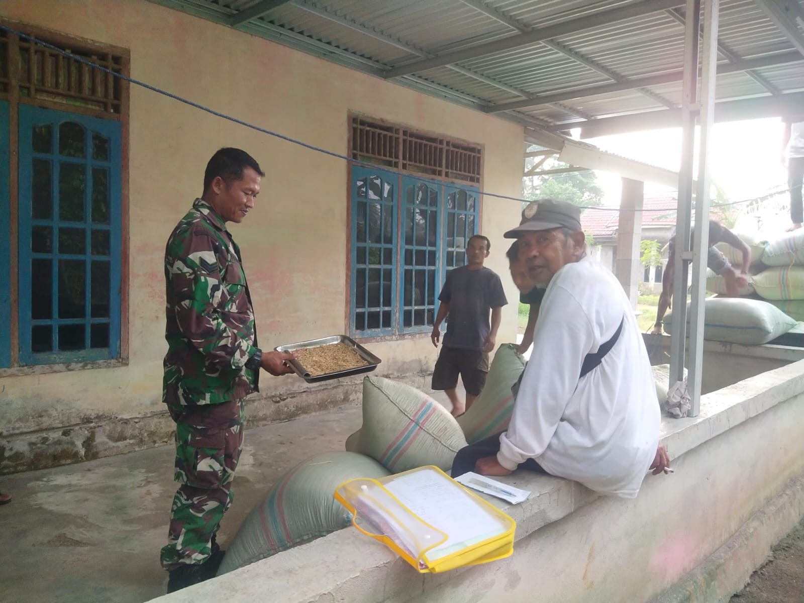 Babinsa Koramil 406-04/Muara Lakitan, Sertu Tugianto, melaksanakan kegiatan serap gabah kering panen sekaligus menjalin silaturahmi bersama masyarakat Desa Sumberejo, Kecamatan Megang Sakti, Kabupaten Musi Rawas, pada Minggu (11/05/2025).