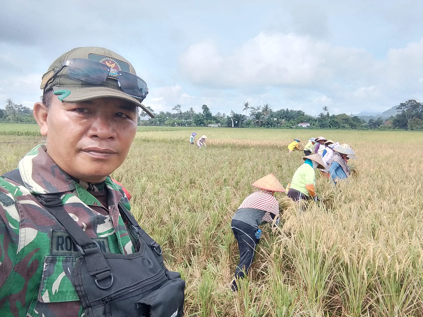 Babinsa Koramil 406-06/Tugumulyo Bantu Warga Panen Padi di Desa Kertosari
