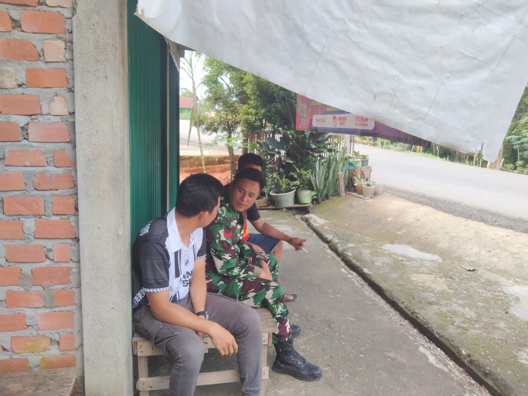 Kopda Hendrix Pranata, Babinsa Koramil 406-01/Rawas Ulu, melaksanakan kegiatan komunikasi sosial (komsos) bersama warga di Kelurahan Pasar Surulangun, Kecamatan Rawas Ulu, Kabupaten Musi Rawas Utara,