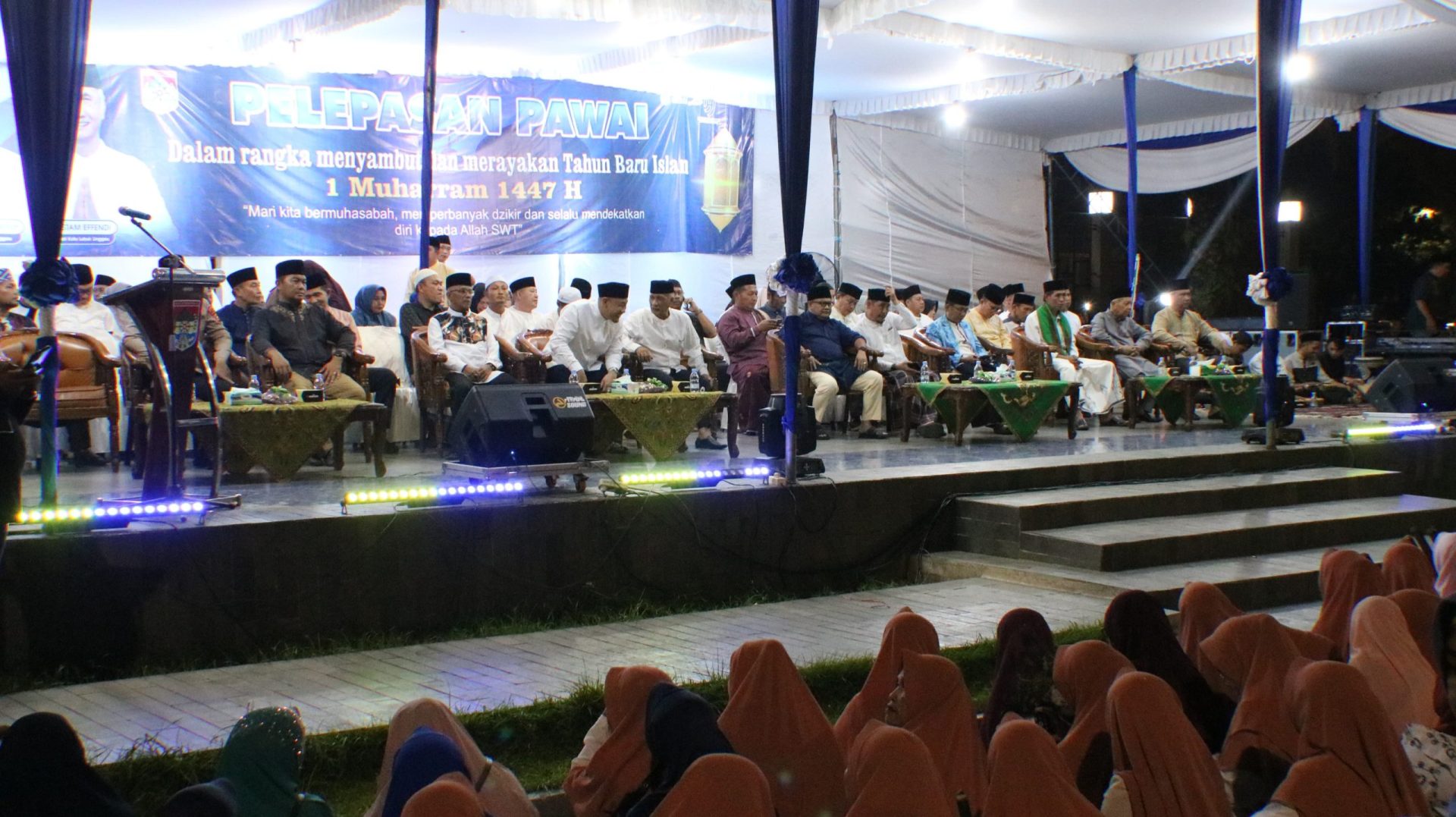Lubuklinggau, 26 Juni 2025, Dalam rangka menyambut Tahun Baru Islam 1 Muharram 1447 H, Pemerintah Kota Lubuklinggau menggelar acara pelepasan pawai obor yang berlangsung meriah di Taman Kurma Alun-Alun Kota Lubuklinggau pada Kamis malam.