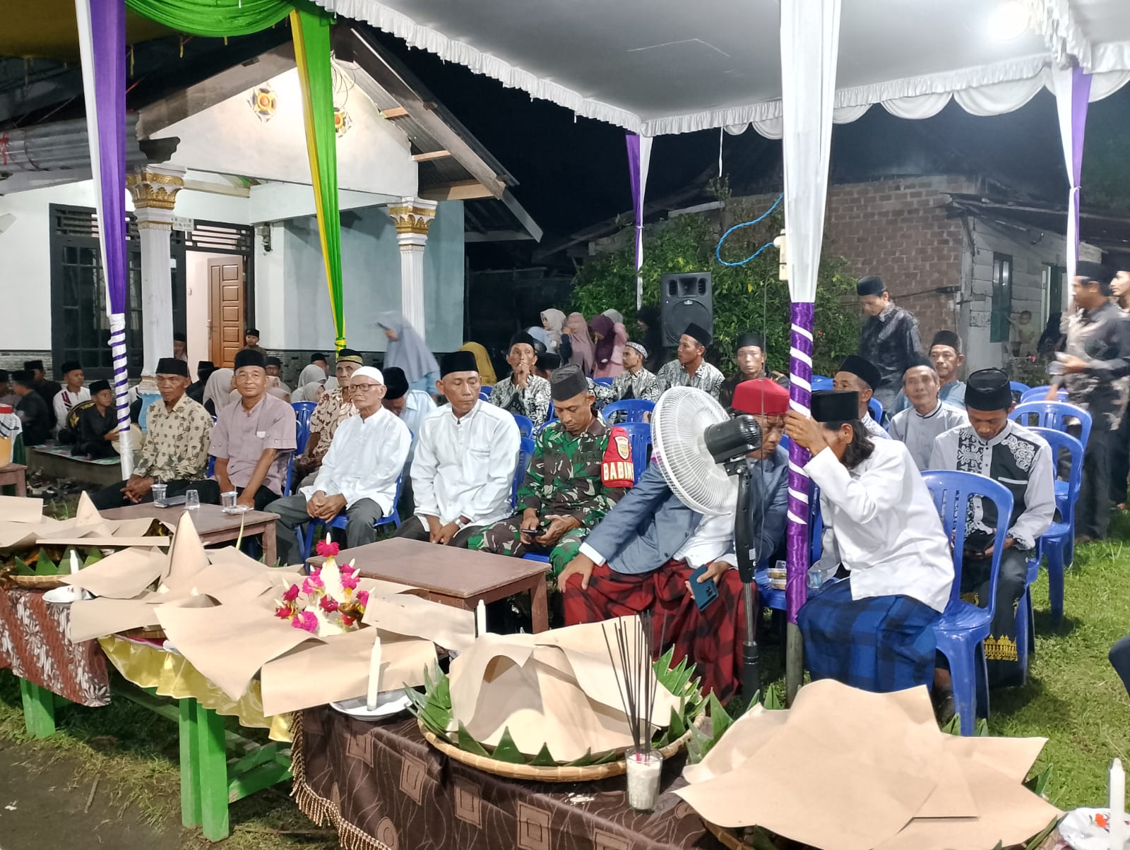 Sabtu 5 Juli 2025 — Babinsa Koramil 406-06/Tugumulyo, Serka Mahyudi menghadiri acara sedekah bumi yang digelar di halaman rumah Bapak Badari, Dusun 4, Desa Kalibening, Kecamatan Tugumulyo, Kabupaten Musi Rawas.