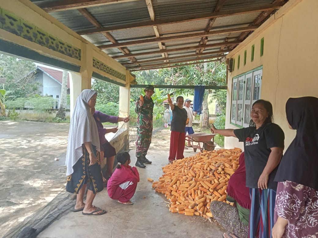 Lensa Garuda-Lubuklinggau, Dalam upaya mempererat kemanunggalan TNI dengan rakyat, Serma Adi Purnomo, Babinsa dari Koramil 406-10/Lubuklinggau Timur, turut serta membantu warga dalam kegiatan panen jagung di Kelurahan Simpang Periuk, Kecamatan Lubuklinggau Selatan II, Kota Lubuklinggau, Pada hari Sabtu (05/07/2025).
