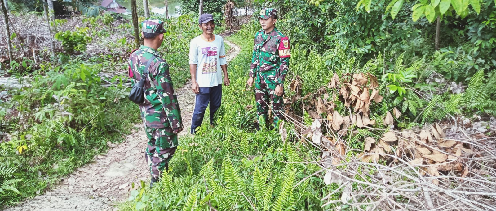 Tugumulyo – Dalam rangka mencegah terjadinya kebakaran hutan dan lahan (Karhutla), Babinsa Koramil 406-06/Tugumulyo Serka Mahyudi bersama Sertu Ma’rufi melaksanakan kegiatan sosialisasi kepada masyarakat di Desa Surodadi, Kecamatan Tugumulyo, Kabupaten Musi Rawas, pada Senin (14/07/2025).