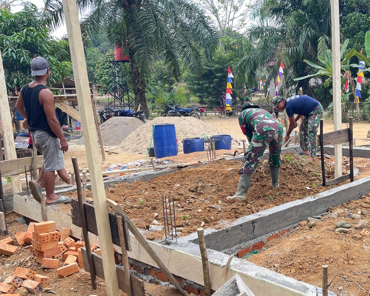 TNI Manunggal Membangun Desa (TMMD) ke-125 Kodim 0406/Lubuklinggau Bersinergi dengan Masyarakat Bangun Rumah di Desa Kota Baru SP 7 Cecar