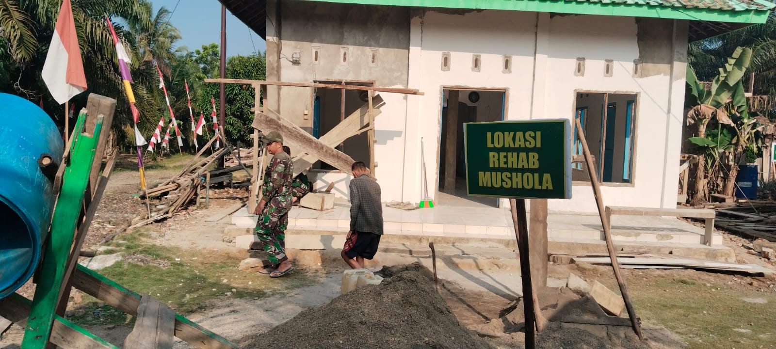 Satgas TMMD ke-125 Kodim 0406/Lubuklinggau Rehabilitasi Musola di Desa Kota Baru SP 7 Kegiatan Sudah Berjalan 7 Hari, Aman dan Lancar