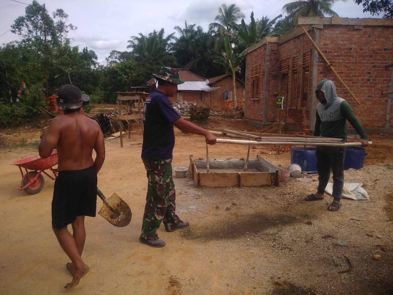 Dengan semangat gotong royong dan kemanunggalan TNI bersama rakyat, Sertu Purwanto bersama anggota Satgas TMMD dan masyarakat bahu-membahu mempercepat pembangunan rumah layak huni yang diperuntukkan bagi warga kurang mampu.
