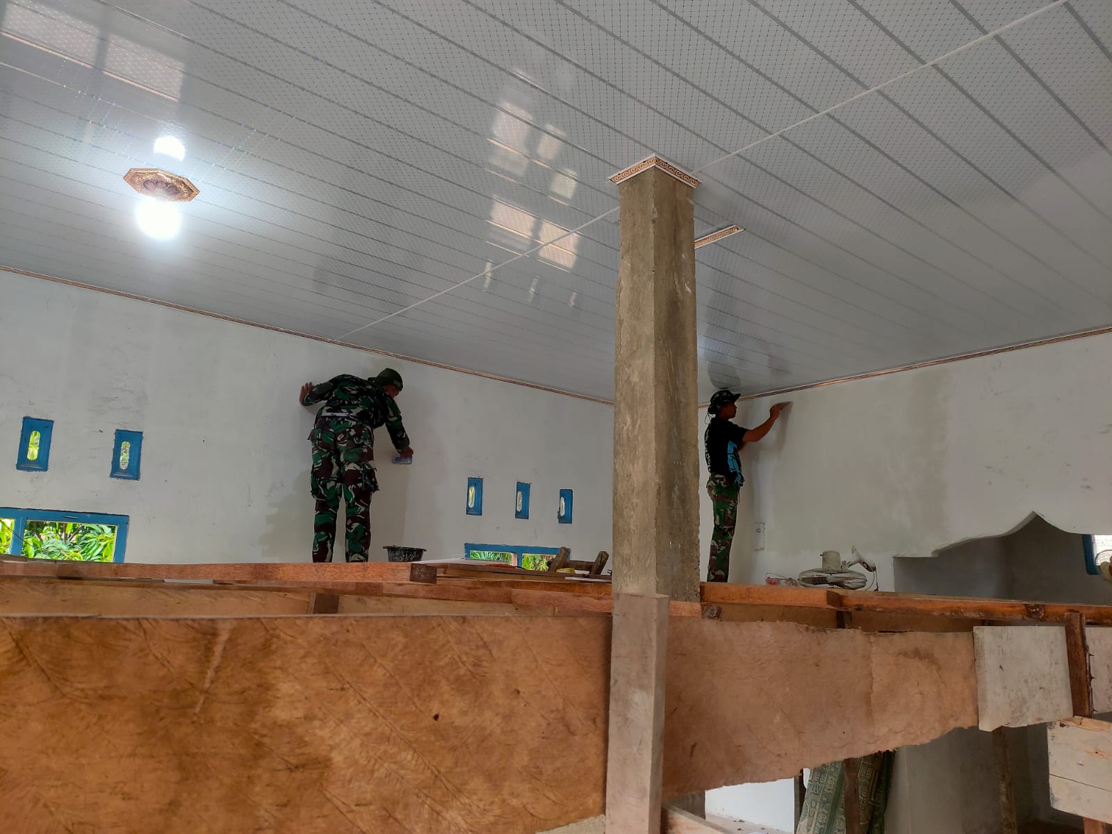 Satgas TMMD Ke-125 Kodim 0406/Lubuklinggau: Pekerjaan Perehaban Musola di Desa Kota Baru SP 7 Kecamatan Bts Ulu Kabupaten Musi Rawas Masuki Tahap Plafon