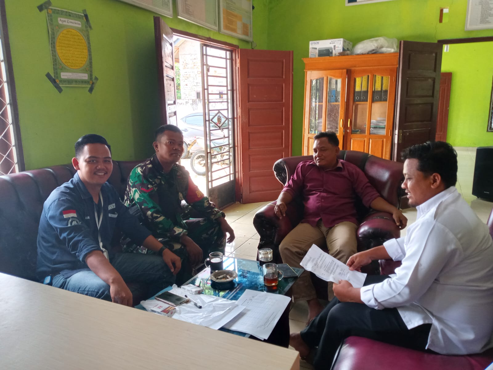 Babinsa Koramil 406-04/Muara Lakitan Kopda Khairul melaksanakan kegiatan Komunikasi Sosial (Komsos) bersama masyarakat dan perangkat Desa Mulyo Sari, Kecamatan Muara Lakitan, Kabupaten Musi Rawas, pada Rabu (10/09/2025).