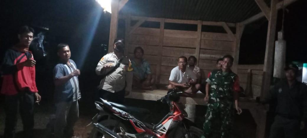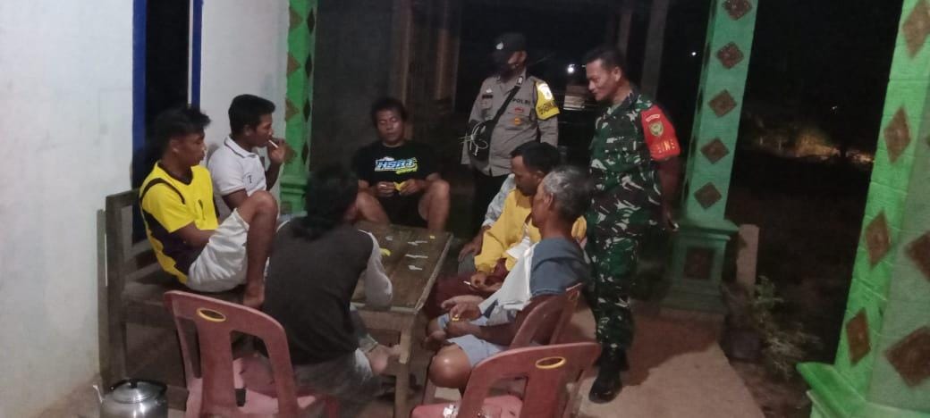 Babinsa Koramil 406-05/Muara Kelingi Kodim 0406/Lubuklinggau Serma Zulkarnain dan Bhabinkamtibmas Laksanakan Poskamling di Desa Beliti Jaya