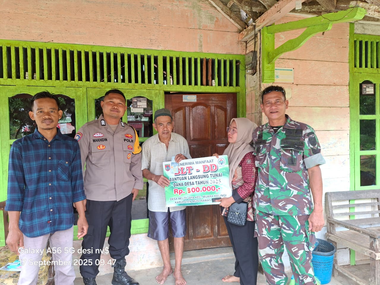 Lensa Garuda-Musi Rawas, Rabu 17 September 2025 – Bintara Pembina Desa (Babinsa) Koramil 406-05/Muara Kelingi, Serma Zulkarnain, turut serta memantau jalannya kegiatan pembagian Bantuan Langsung Tunai (BLT) kepada masyarakat kurang mampu di Desa Beliti Jaya, Kecamatan Muara Kelingi, Kabupaten Musi Rawas.