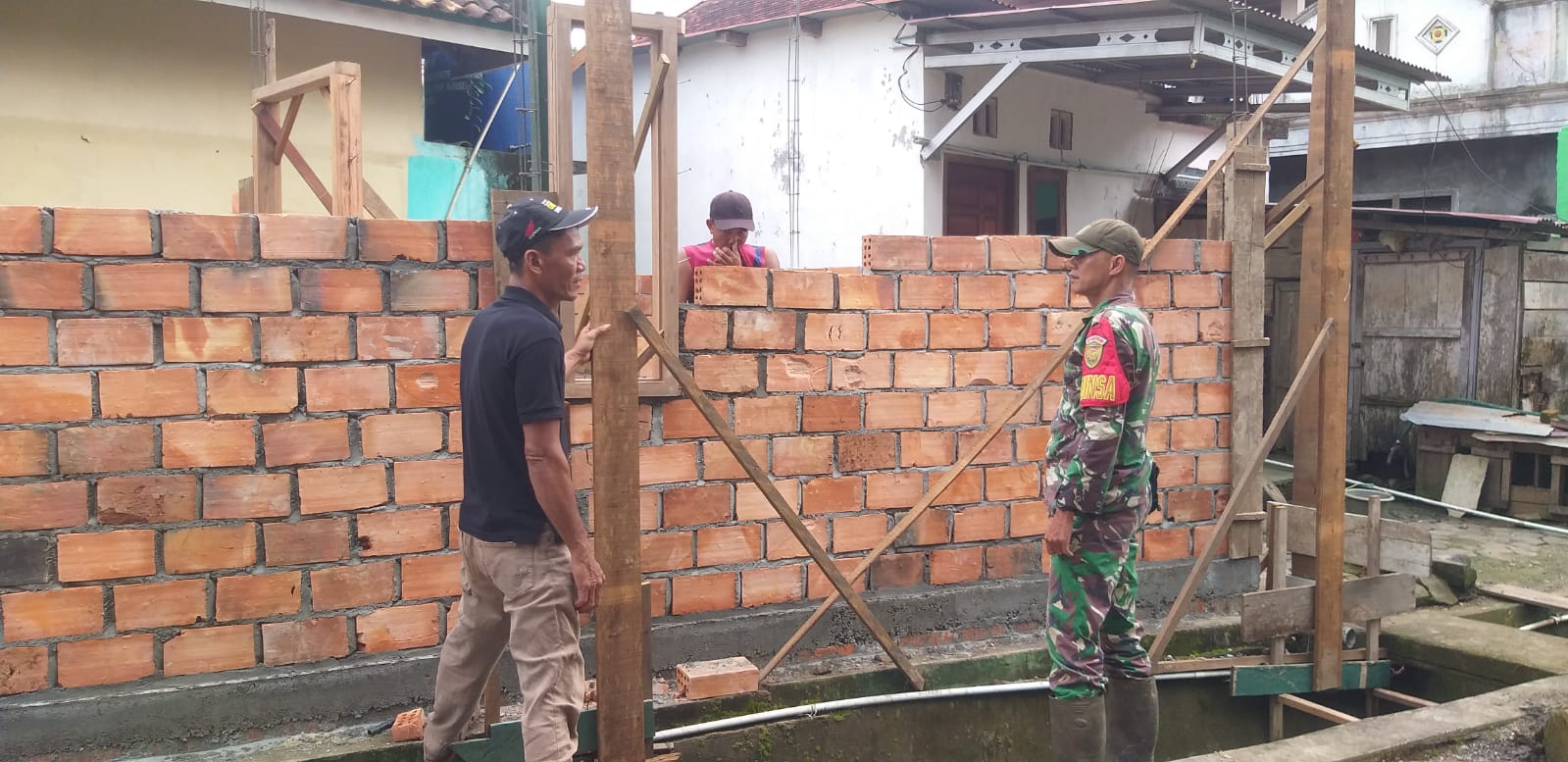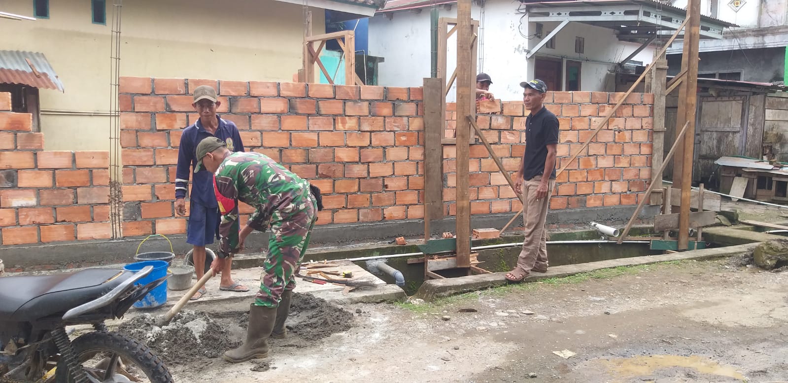 Gotong Royong Bersama Warga, Babinsa Bantu Bangun Rumah Warga Binaan