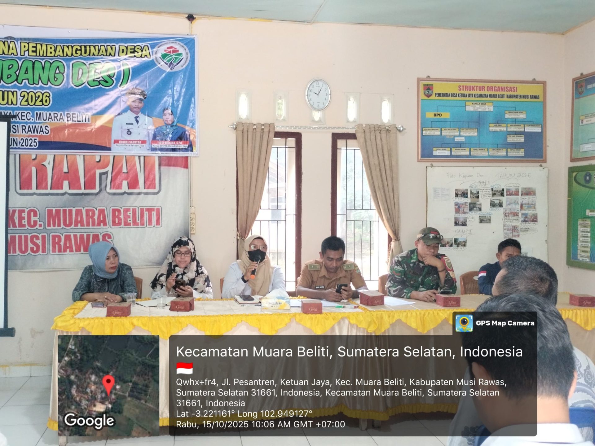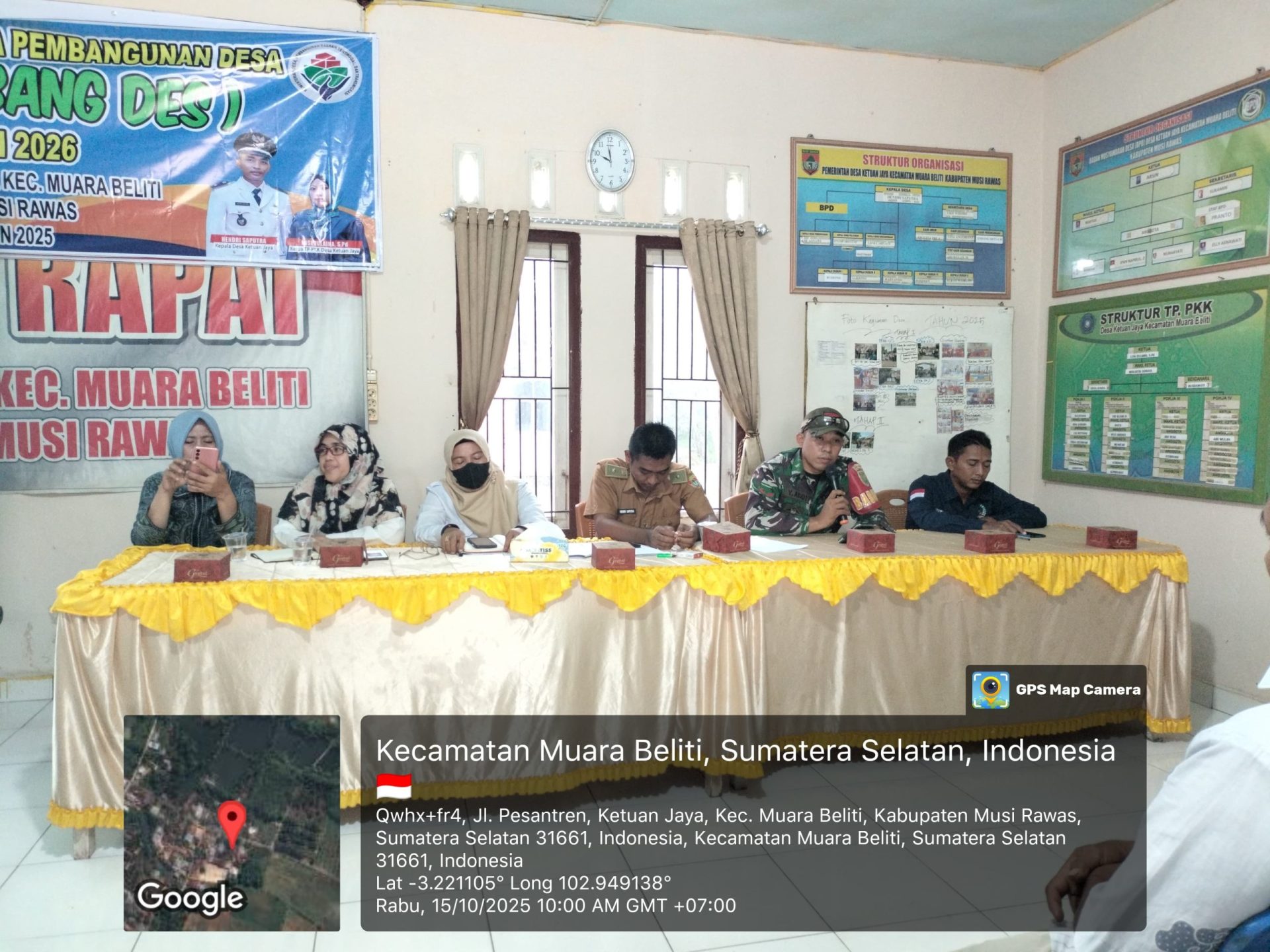 Lensa Garuda – Musi Rawas. Babinsa Koramil 406-06/Tugumulyo Kopda Yogi Ardi menghadiri kegiatan Musyawarah Rencana Pembangunan Desa (Musrenbangdes) Tahun 2026 yang dilanjutkan dengan kegiatan pengecekan titik 100% pembangunan, bertempat di Desa Ketuan Jaya, Kecamatan Muara Beliti, Kabupaten Musi Rawas, pada Rabu (15/10/2025).