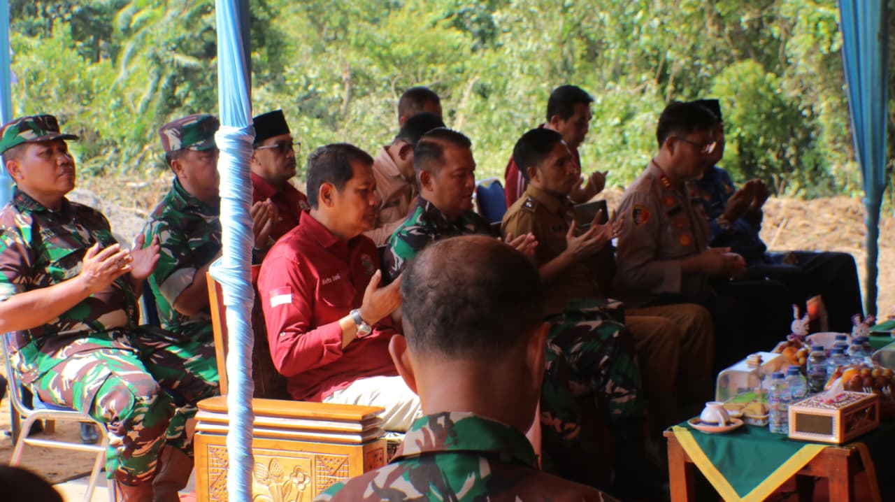 Komandan kodim 0406/LubukLinggau hadiri acara peletakan batu pertama pembangunan koperasi merah putih di desa Muar rengas
