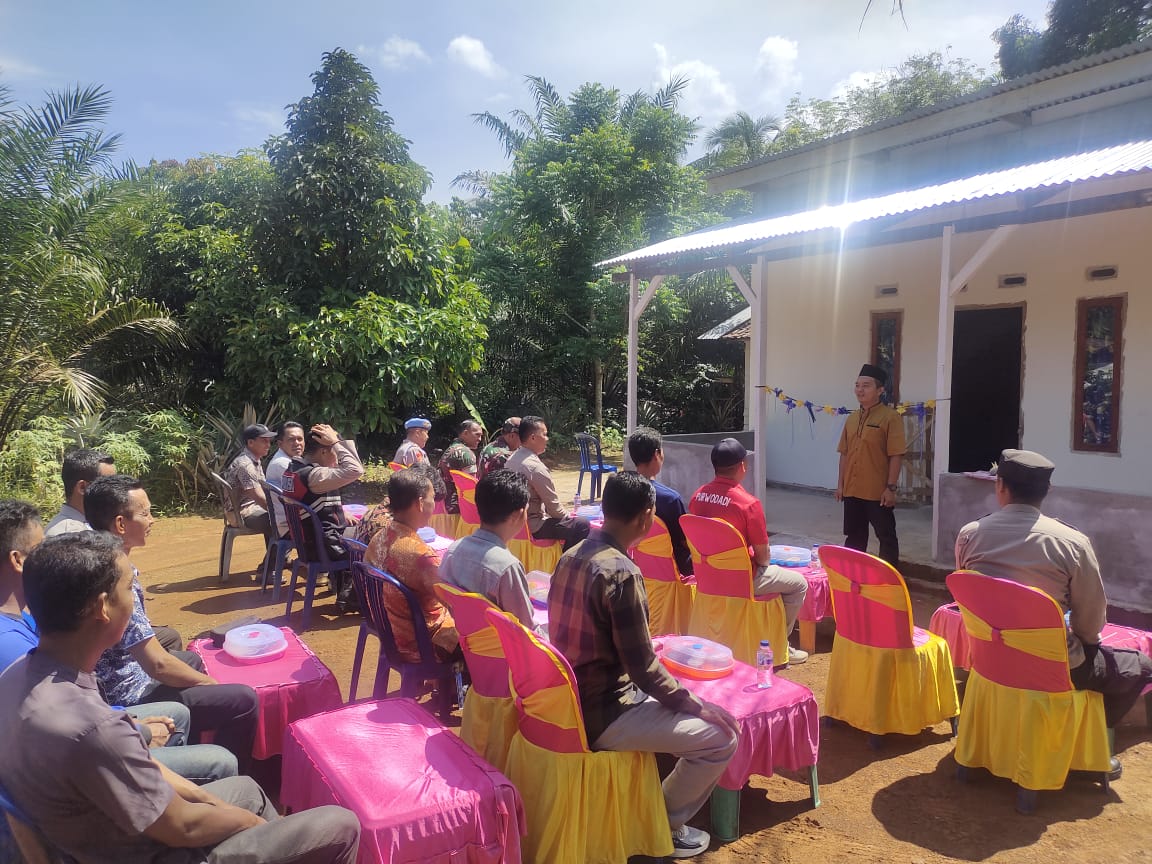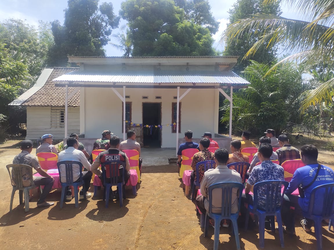 Tugumulyo, Jum’at 17 Oktober 2025,Babinsa Koramil 406-06/Tugumulyo Sertu Subur menghadiri kegiatan penyerahan kunci bedah rumah dari Polres Musi Rawas kepada masyarakat di Desa Sadarkarya, Kecamatan Purwodadi, Kabupaten Musi Rawas. Kegiatan ini dilaksanakan di rumah Bapak Manto, warga penerima bantuan bedah rumah.