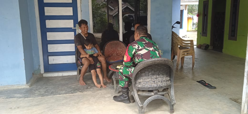Babinsa Koramil 406-09/Terawas, Serka Zainal Abidin, melaksanakan kegiatan komunikasi sosial (Komsos) bersama warga binaan di Dusun 7 Desa Madang, Kecamatan Sumber Harta, Kabupaten Musi Rawas, Selasa (21/10/2025).