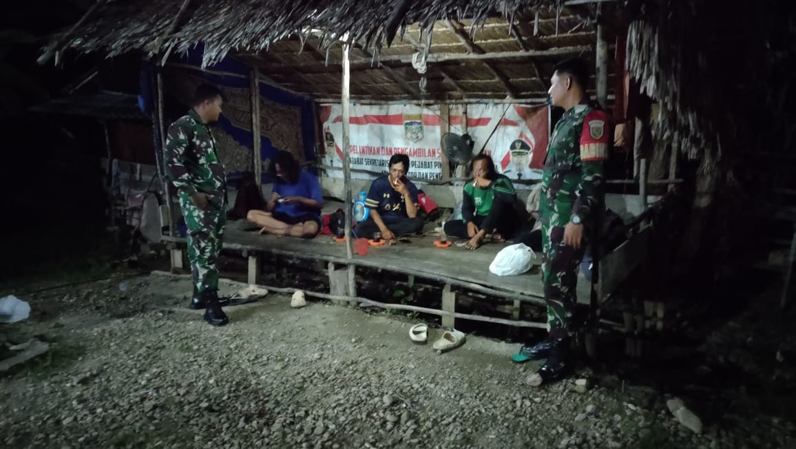 Babinsa Koramil 406-03/Rupit Serda H. Angga melaksanakan kegiatan patroli dan monitoring Siskamling di wilayah Desa Karang Waru dan Desa Karang Anyar, Kecamatan Rupit, Kabupaten Musi Rawas Utara.