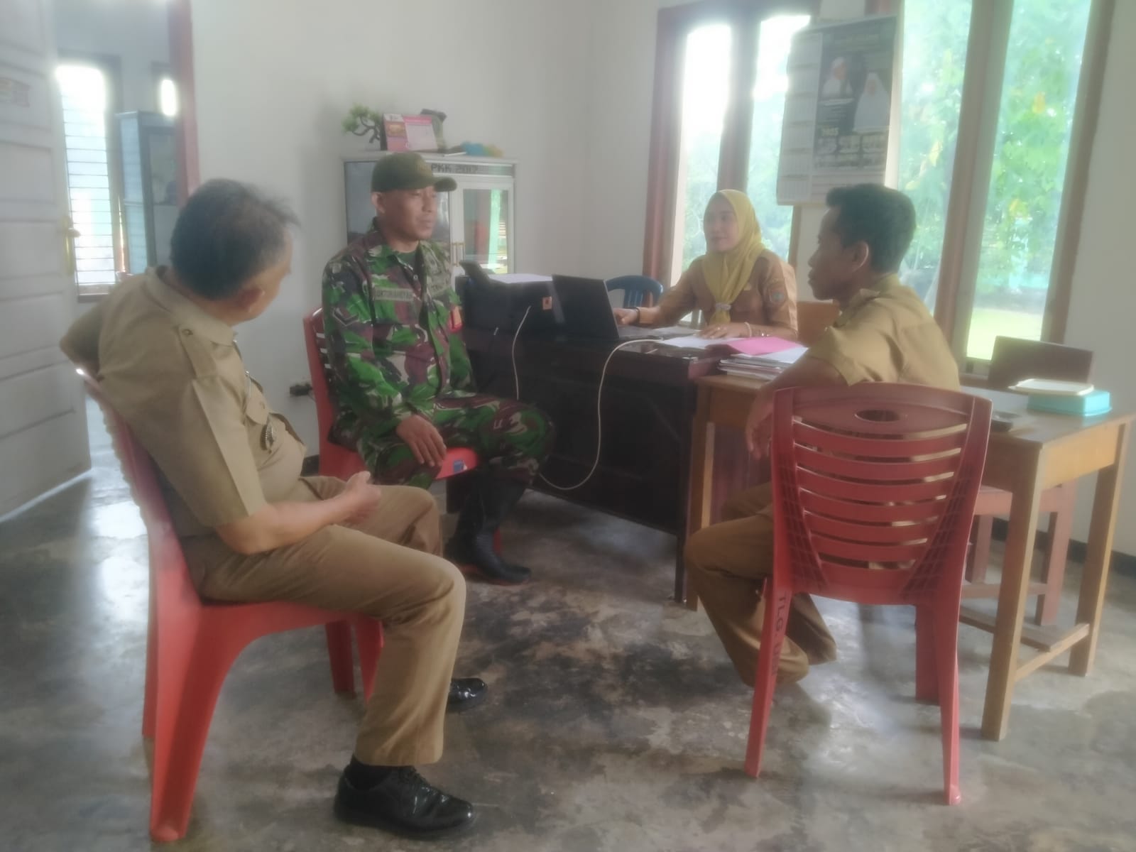 Babinsa Koramil 406-04/Muara Lakitan Serda Oktorinsyah melaksanakan kegiatan Komunikasi Sosial (Komsos) dengan Lurah dan perangkat Kelurahan Talang Ubi, Kecamatan Megang Sakti, Kabupaten Musi Rawas.
