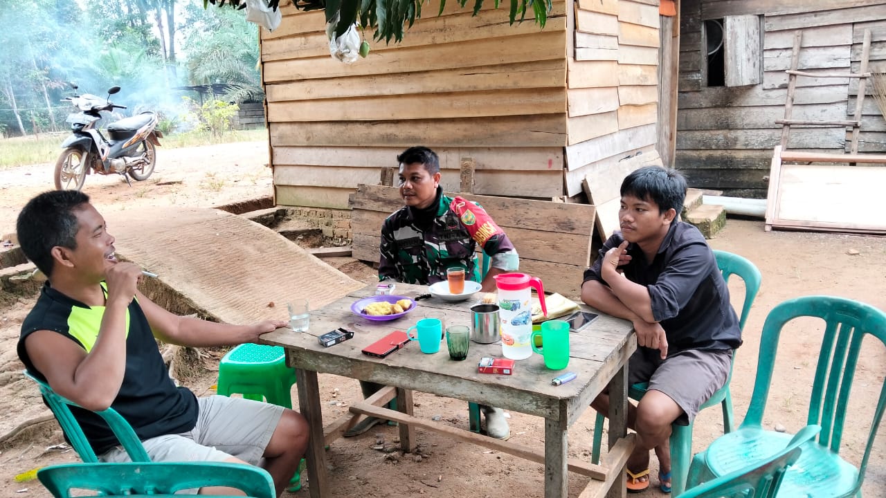 Babinsa Koramil 406-04/Muara Lakitan Sertu Wahyu Nugroho melaksanakan kegiatan Komunikasi Sosial (Komsos) bersama masyarakat di Desa SP 5 Tri Anggun Jaya, Kecamatan Muara Lakitan, Kabupaten Musi Rawas.