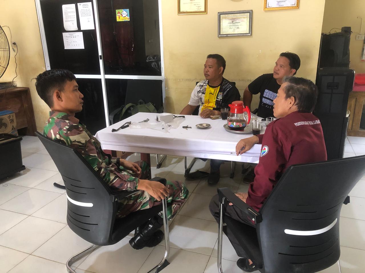 Babinsa Koramil 406-03/Rupit, Serda Fauzi, melaksanakan kegiatan Komunikasi Sosial (Komsos) bersama perangkat Desa Lawang Agung, Kecamatan Rupit, Kabupaten Musi Rawas Utara (Muratara).